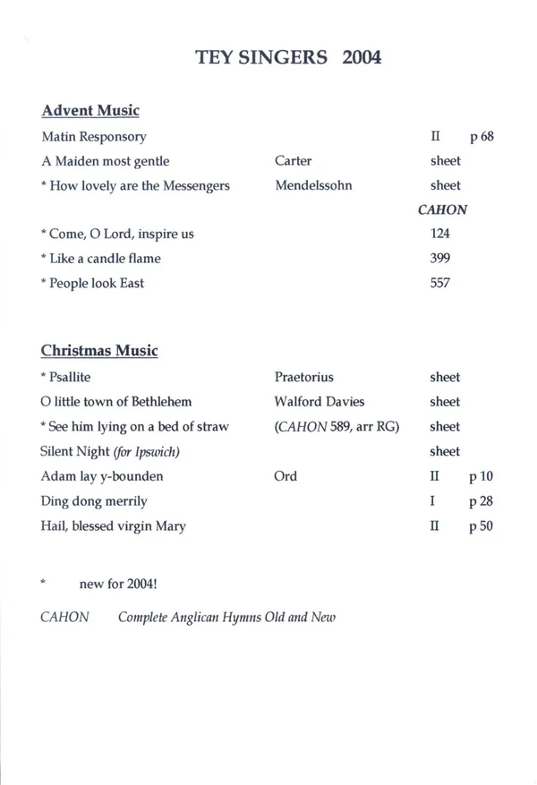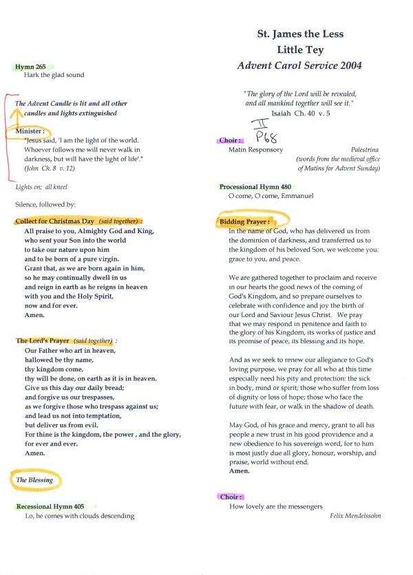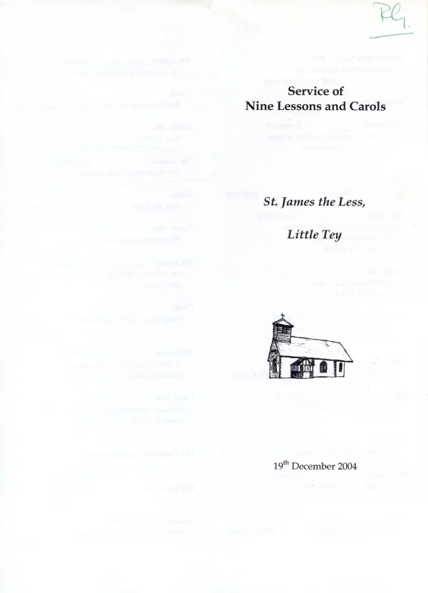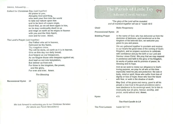 Christmas Carol Service Sheet for Little Tey church, 2004