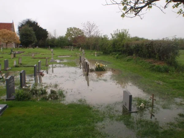 St Andrew's Church waterlogged churchyard