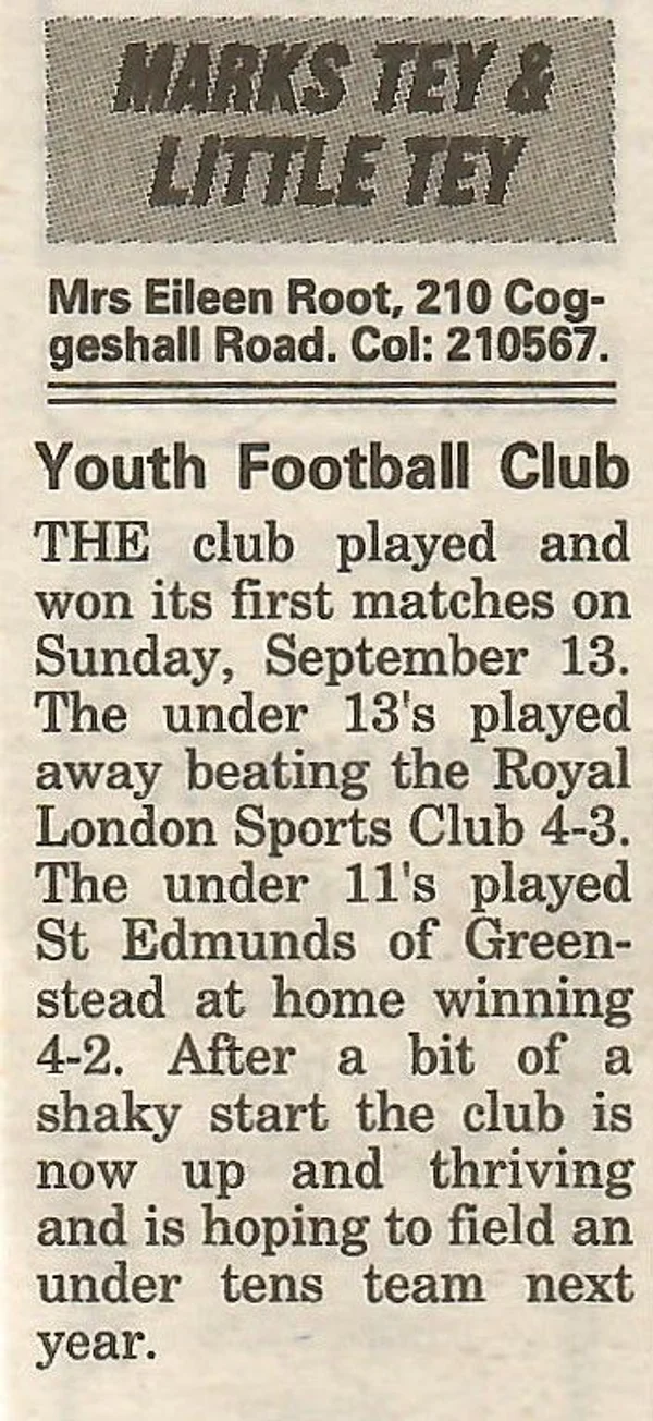 Marks Tey football team, V marking on shirts, photo 2
