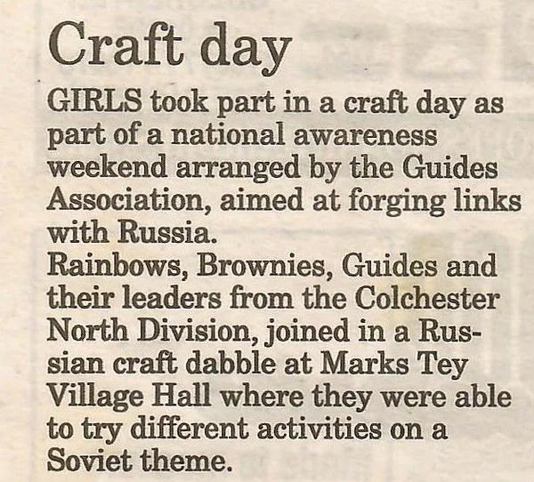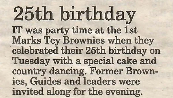 Marks Tey Brownies' bottle stall, newspaper cutting