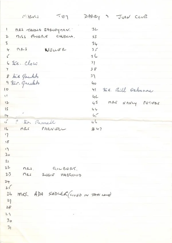 Darby and Joan Club outin, photo 1, names to match the numbers
