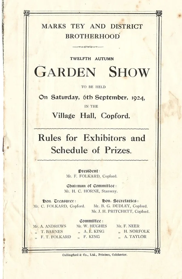 Marks Tey & District Garden Show, Rules for Exhibitors etc, 1924