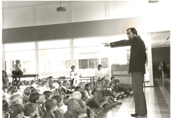 Rev Peter Adam's last assembly at Primary School