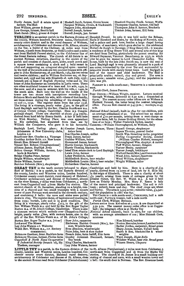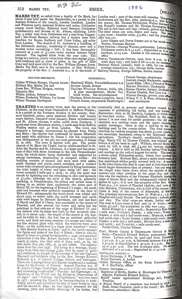 Kelly's Directory of Essex, Marks Tey and Little Tey, 1882