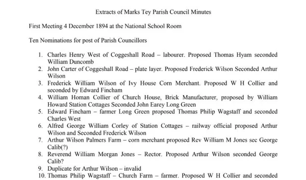Extracts of Minutes of Parish Council from 1894 until 1850