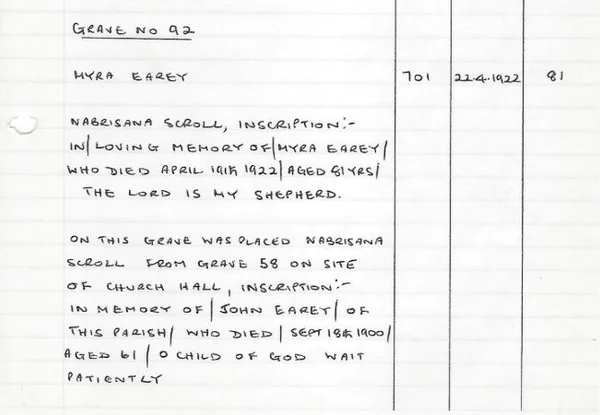 Headstone Grave 92, red area