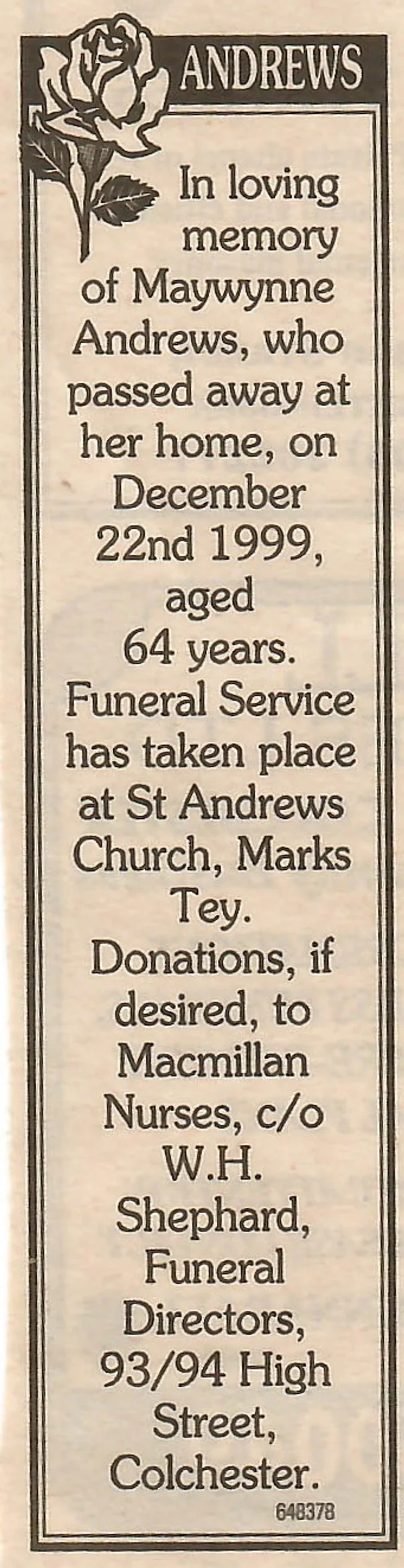 death news 2000 Andrews
