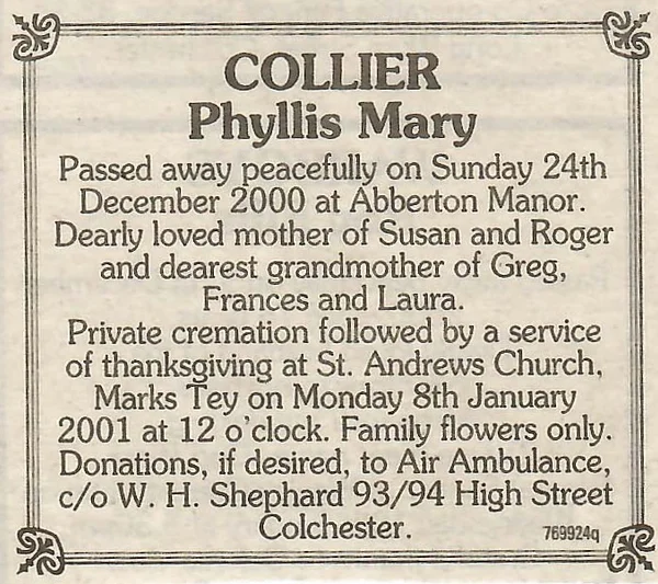 death news 2001 Collier