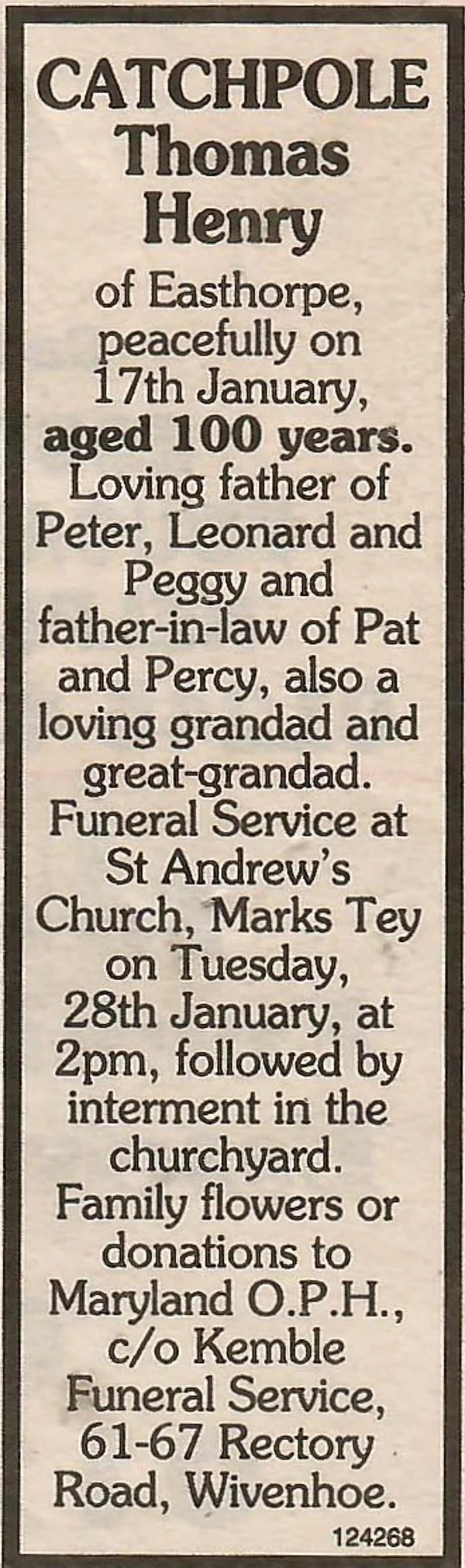 death news 2000 Catchpole