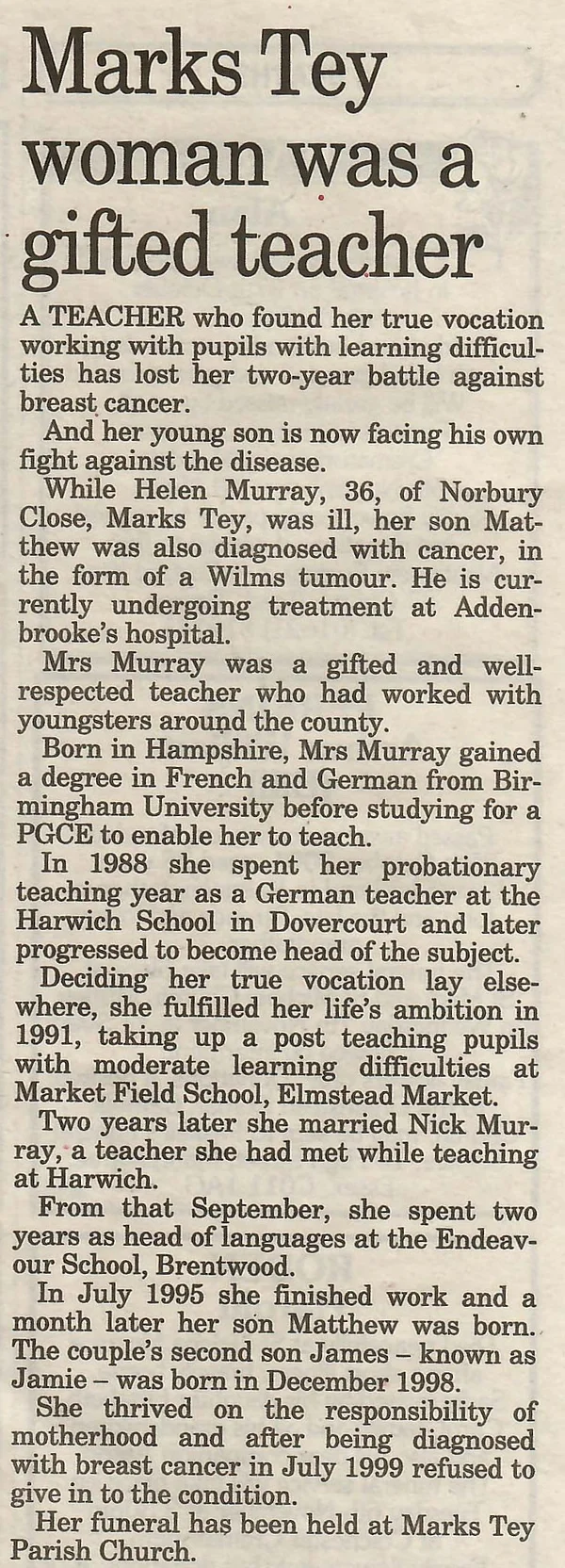obituary news 2001 Murray