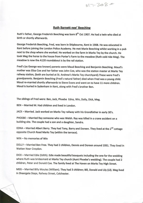 Memories of Ruth Barnett nee Beeching, part 1