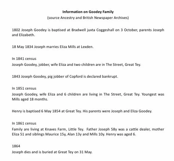 Information on the Goodey family of Great Tey, Marks Tey and Copford