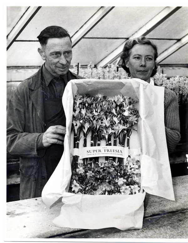 Freesias in a greenhouse