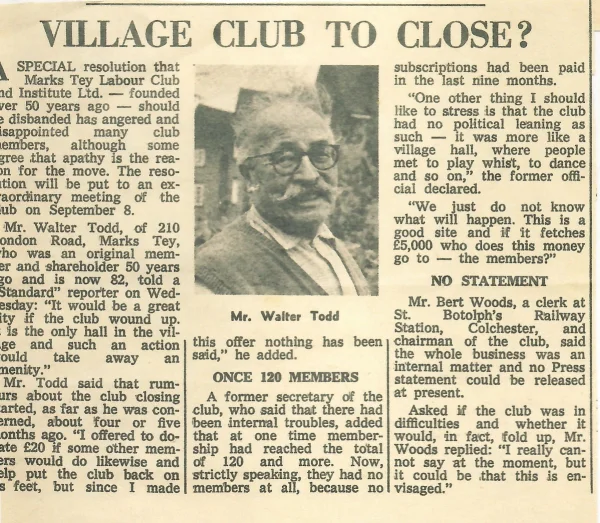 Labour Club could close in Marks Tey, c1965