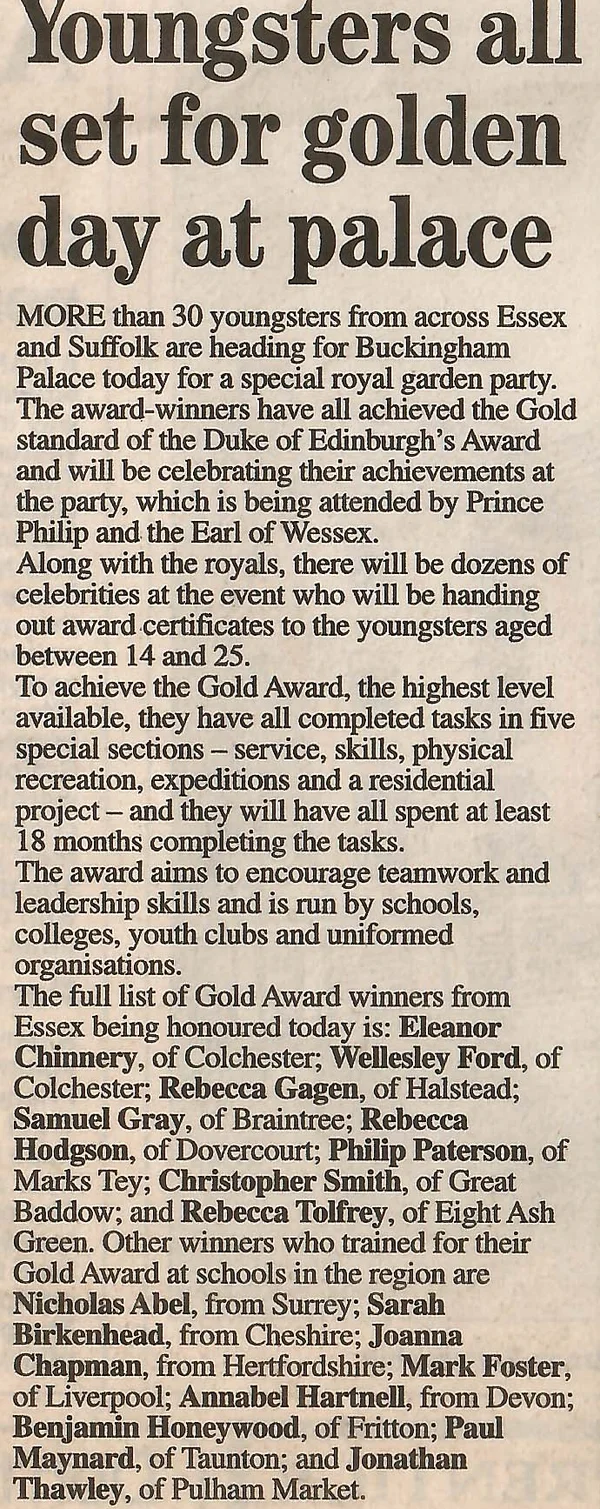 Palace news 2001 DofE award