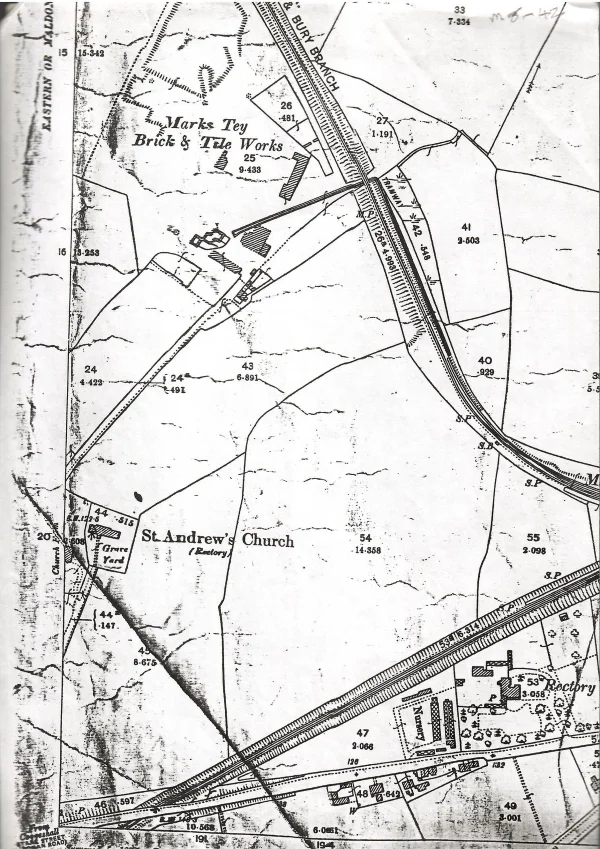 rail map Marks Tey towards Aldham