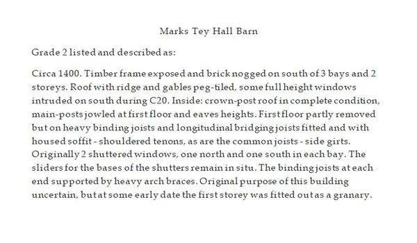 Marks Tey Hall Barn, story