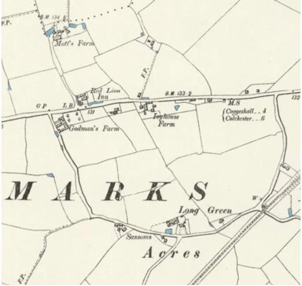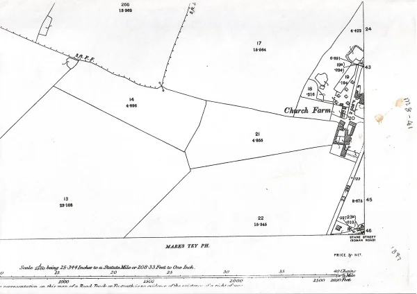 OS map showing Marks Tey Hall, 1923