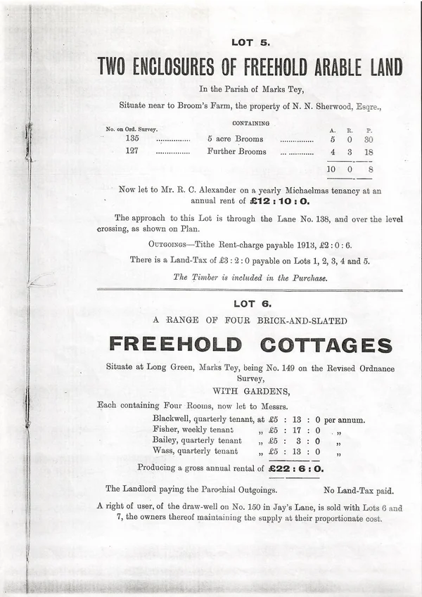 Sale of four cottages at Long Green