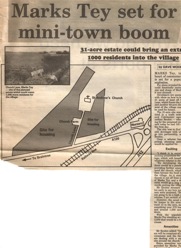 A view of Church Farm and St Andrew's church from Coggeshall Road