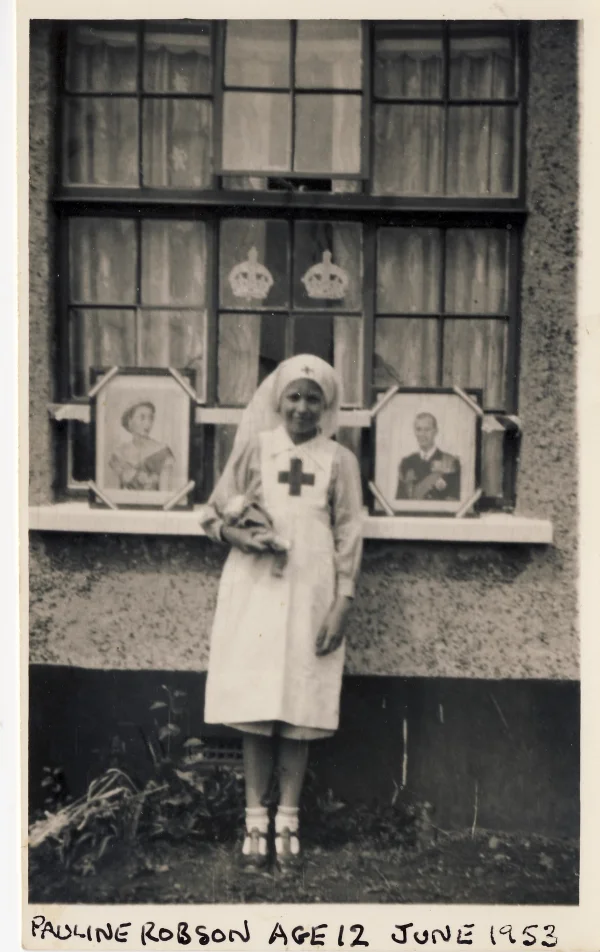 Pauline Mattin, then Robson, dressed for Coronation, 1953