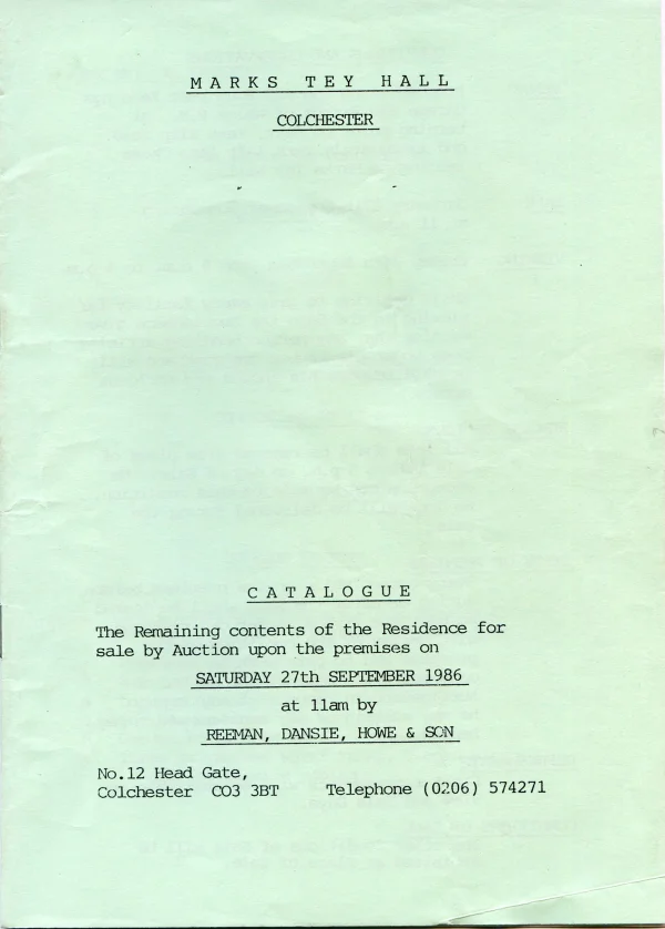 Auction of remaining contents of Marks Tey Hall