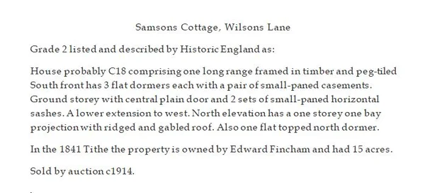 Sansoms Cottage (wrongly Samsons Cottage), story