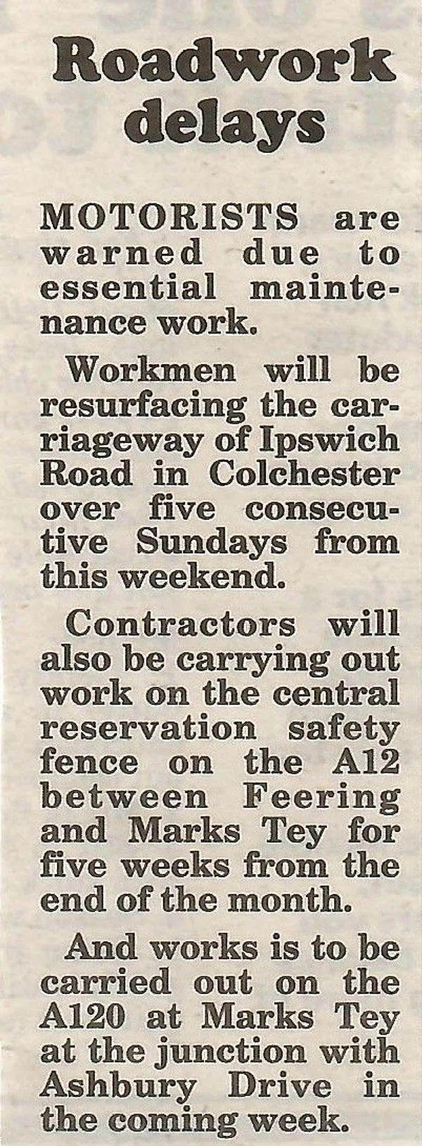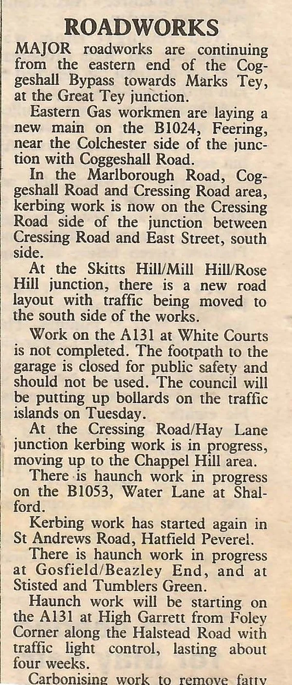 news 1986 A120 roadworks