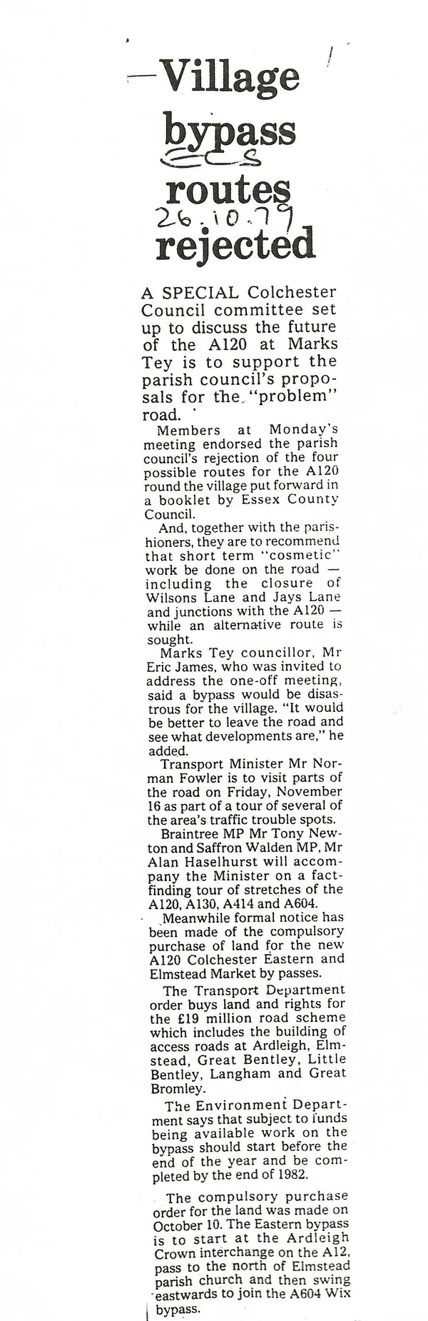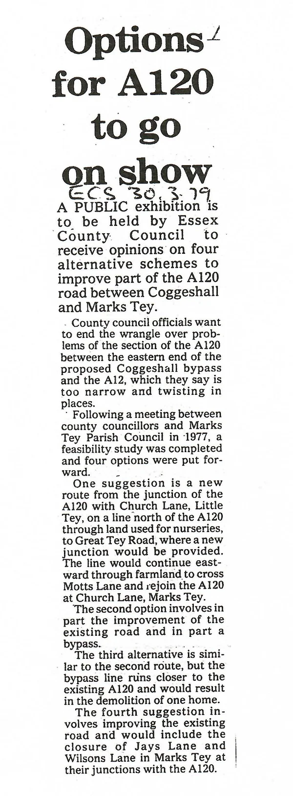 Options for A120 bypass on show 1979