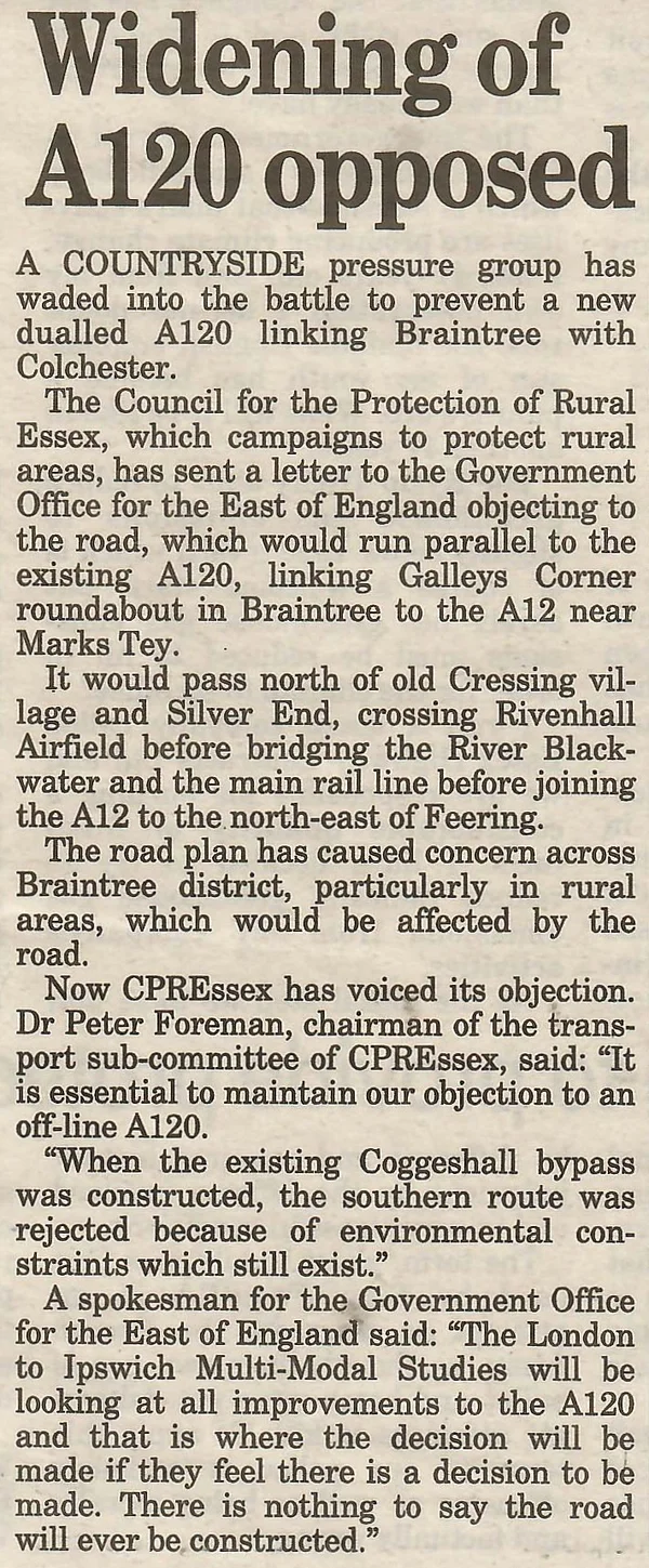 A120 news 2001 widening