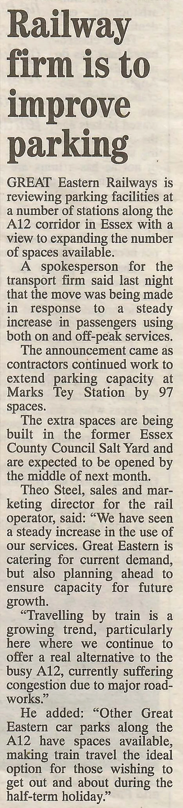 Marks Tey news 2000 45 minutes from Liverpool Street