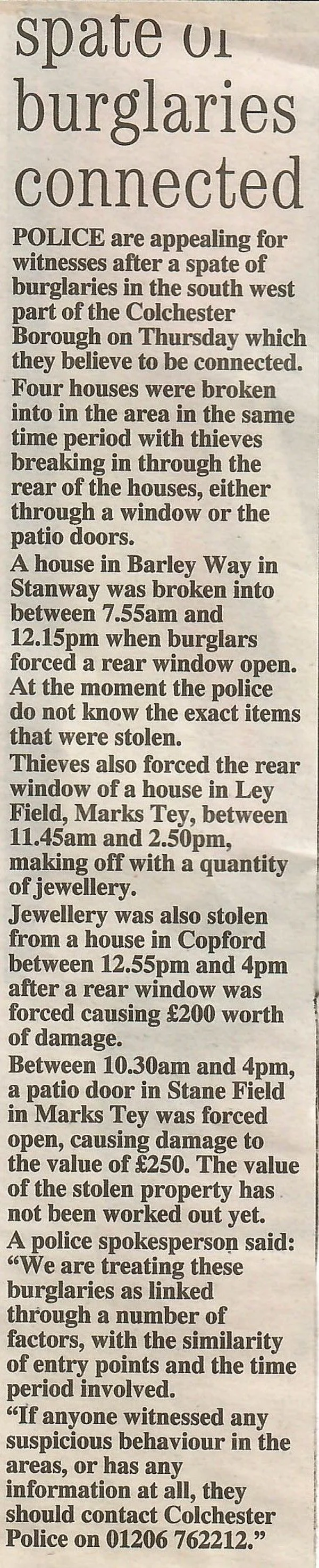 news 1999 burglaries EADT