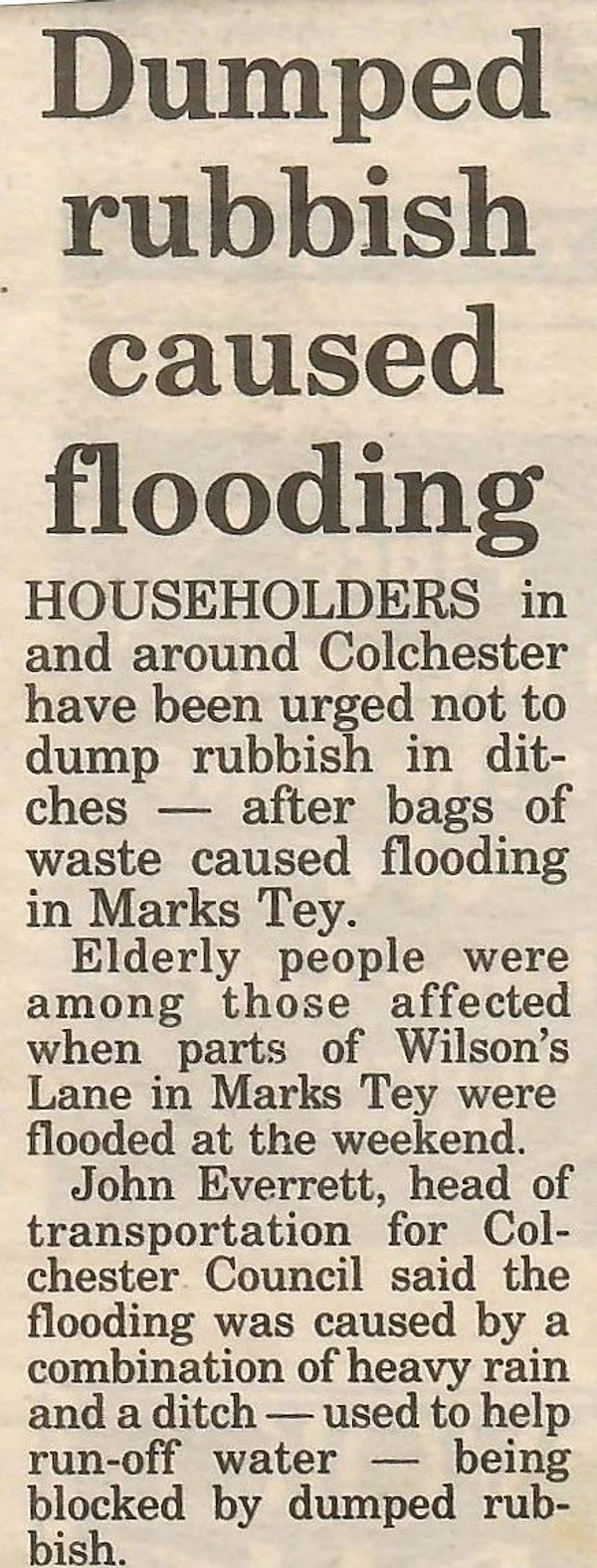 news 1992 flood Wilsons Lane