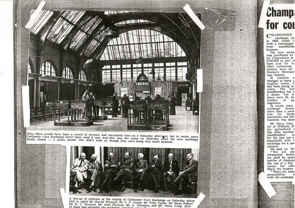 Growers and merchants traded their seeds at local corn exchanges. They took samples of their products wrapped in brown paper bags, linen bags or canvas sacks, whichever was most suitable for the type of seed. Seed buyers, who might be other farmers or merchants could inspect the seed and decide a price directly with the grower. The nearest corn exchange to Marks Tey was in Colchester and was a glass-roofed building next to the Cups Hotel on the High Street. In its day, the Colchester Corn Exchange opened and closed to the ring of a heavy brass bell and could be attended by 1000 buyers and sellers in a day. It closed in 1967.