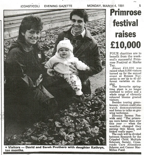 In the early spring Bypass Nurseries held a Primrose Festival in Marks Tey. The greenhouses were open to the public to watch pollinating demonstrations, admire the incredible colourful floral displays and buy plants for their gardens. Hundreds of people would visit over the two-day festival that each year raised thousands of pounds for charities.